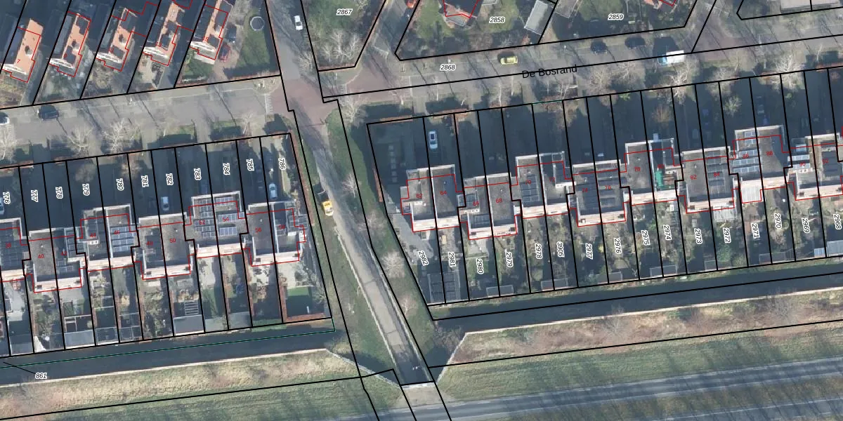 Het perceel waarop De Bosrand 62 staat heeft een oppervlakte van 451 m². Dit is een groot perceel. De perceeloppervlakte wordt geregistreerd door het Kadaster. Gedetailleerde informatie over de maten van dit perceel kunt u vinden in het rapport Kadastrale kaart met maatvoering van De Bosrand 62.