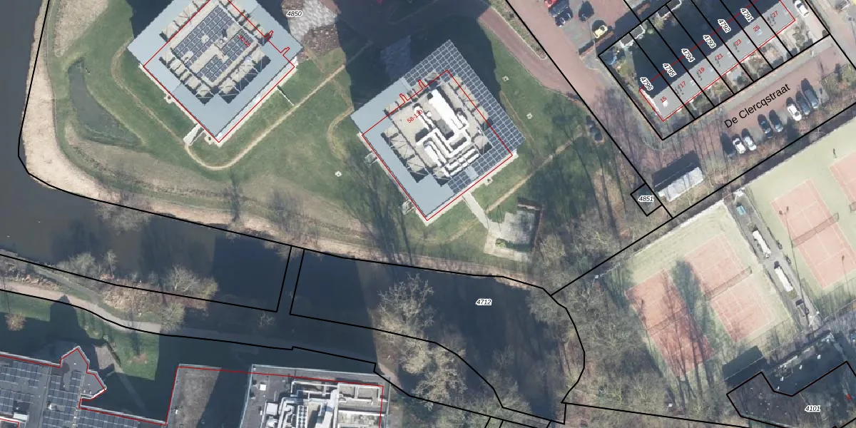Het perceel waarop De Clercqstraat 60 staat heeft een oppervlakte van 1,3 ha. Dit is een zeer groot perceel. De perceeloppervlakte wordt geregistreerd door het Kadaster. Gedetailleerde informatie over de maten van dit perceel kunt u vinden in het rapport Kadastrale kaart met maatvoering van De Clercqstraat 60.
