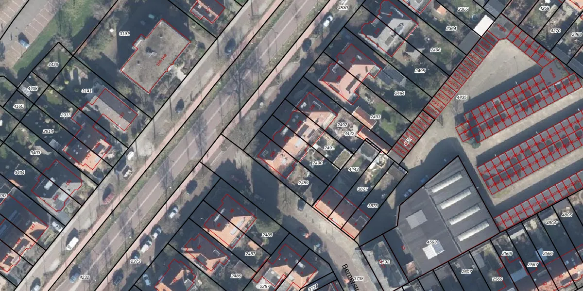 Gebruik de zoekbalk of klik op een perceel voor informatie over de adressen binnen dit perceel.