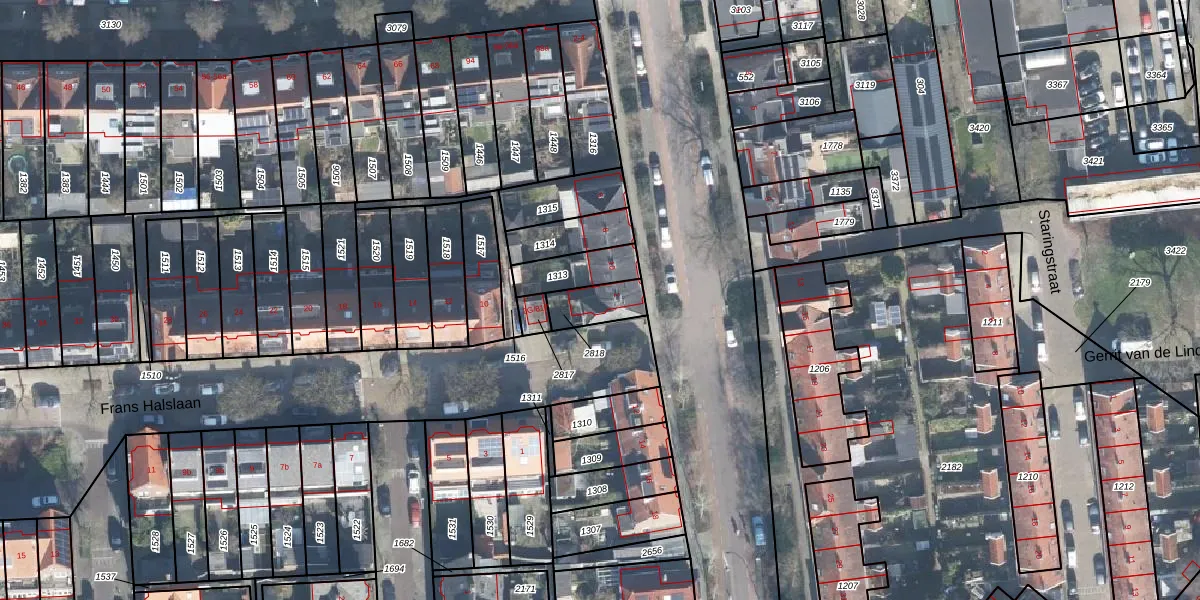 Het perceel waarop Frans Halslaan 2 staat heeft een oppervlakte van 104 m². Dit is een middelgroot perceel. De perceeloppervlakte wordt geregistreerd door het Kadaster. Gedetailleerde informatie over de maten van dit perceel kunt u vinden in het rapport Kadastrale kaart met maatvoering van Frans Halslaan 2.