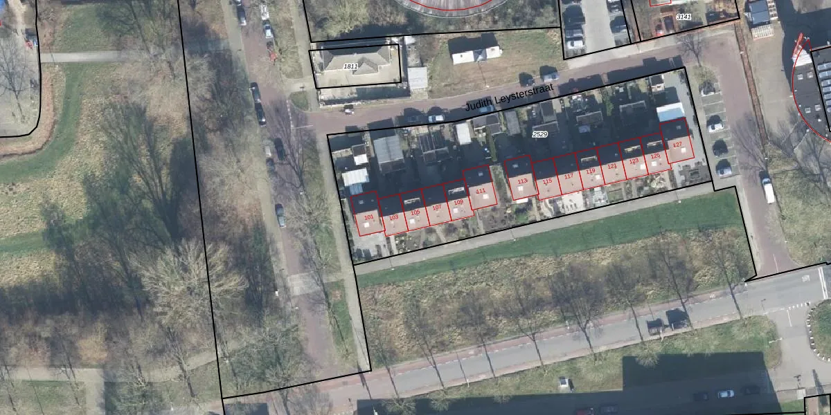 Het perceel waarop Gerard Doustraat 105 staat heeft een oppervlakte van 2540 m². Dit is een zeer groot perceel. De perceeloppervlakte wordt geregistreerd door het Kadaster. Gedetailleerde informatie over de maten van dit perceel kunt u vinden in het rapport Kadastrale kaart met maatvoering van Gerard Doustraat 105.