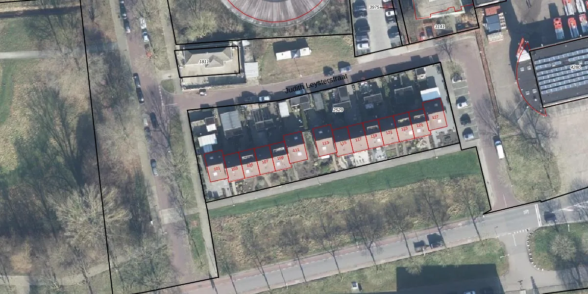 Het perceel waarop Gerard Doustraat 111 staat heeft een oppervlakte van 2540 m². Dit is een zeer groot perceel. De perceeloppervlakte wordt geregistreerd door het Kadaster. Gedetailleerde informatie over de maten van dit perceel kunt u vinden in het rapport Kadastrale kaart met maatvoering van Gerard Doustraat 111.