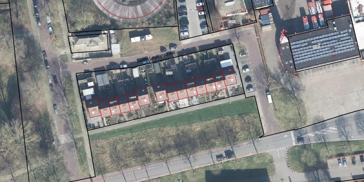 Het perceel waarop Gerard Doustraat 117 staat heeft een oppervlakte van 2540 m². Dit is een zeer groot perceel. De perceeloppervlakte wordt geregistreerd door het Kadaster. Gedetailleerde informatie over de maten van dit perceel kunt u vinden in het rapport Kadastrale kaart met maatvoering van Gerard Doustraat 117.