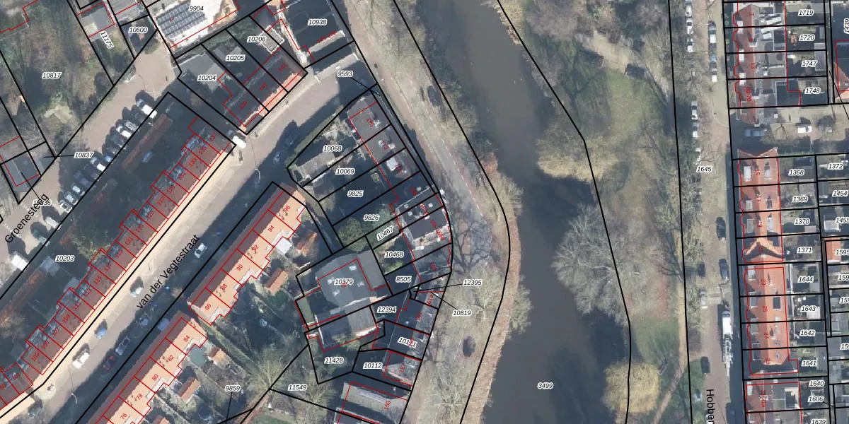 Gebruik de zoekbalk of klik op een perceel voor informatie over de adressen binnen dit perceel.