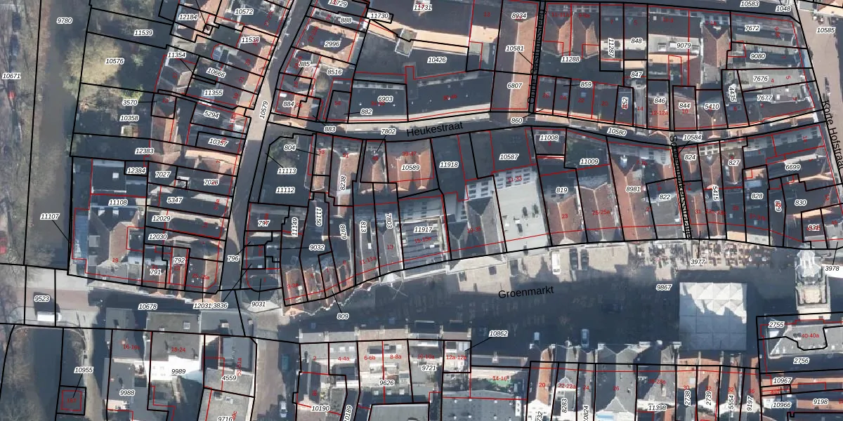 Het perceel waarop Groenmarkt 15-e staat heeft een oppervlakte van 186 m². Dit is een middelgroot perceel. De perceeloppervlakte wordt geregistreerd door het Kadaster. Gedetailleerde informatie over de maten van dit perceel kunt u vinden in het rapport Kadastrale kaart met maatvoering van Groenmarkt 15-e.