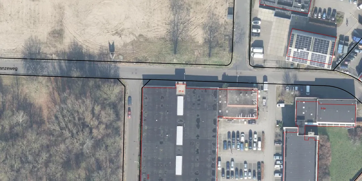 Het perceel waarop Hanzeweg 2-T staat heeft een oppervlakte van 1,4 ha. Dit is een zeer groot perceel. De perceeloppervlakte wordt geregistreerd door het Kadaster. Gedetailleerde informatie over de maten van dit perceel kunt u vinden in het rapport Kadastrale kaart met maatvoering van Hanzeweg 2-T.