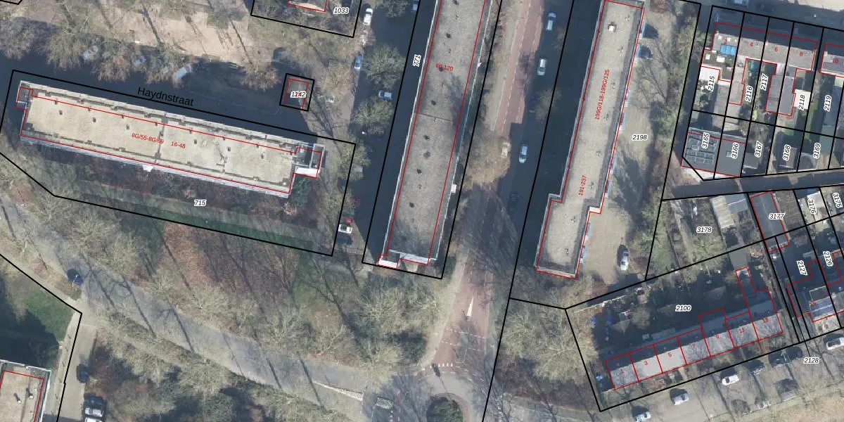 Het perceel waarop Haydnstraat 118 staat heeft een oppervlakte van 2074 m². Dit is een zeer groot perceel. De perceeloppervlakte wordt geregistreerd door het Kadaster. Gedetailleerde informatie over de maten van dit perceel kunt u vinden in het rapport Kadastrale kaart met maatvoering van Haydnstraat 118.