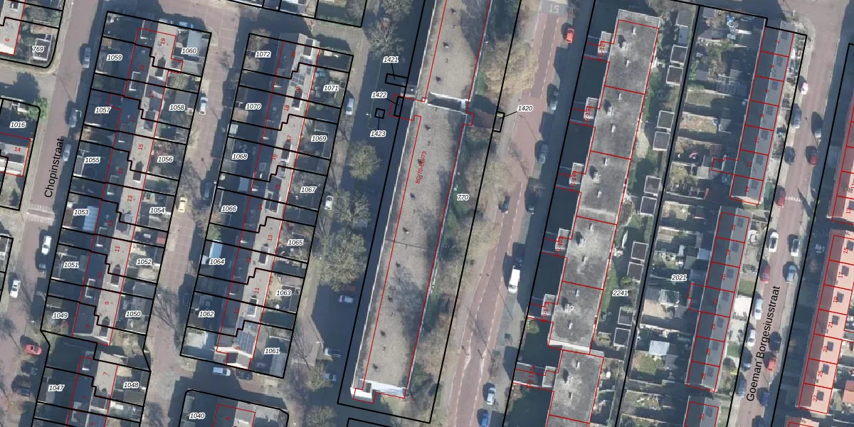 Het perceel waarop Haydnstraat 182 staat heeft een oppervlakte van 2414 m². Dit is een zeer groot perceel. De perceeloppervlakte wordt geregistreerd door het Kadaster. Gedetailleerde informatie over de maten van dit perceel kunt u vinden in het rapport Kadastrale kaart met maatvoering van Haydnstraat 182.