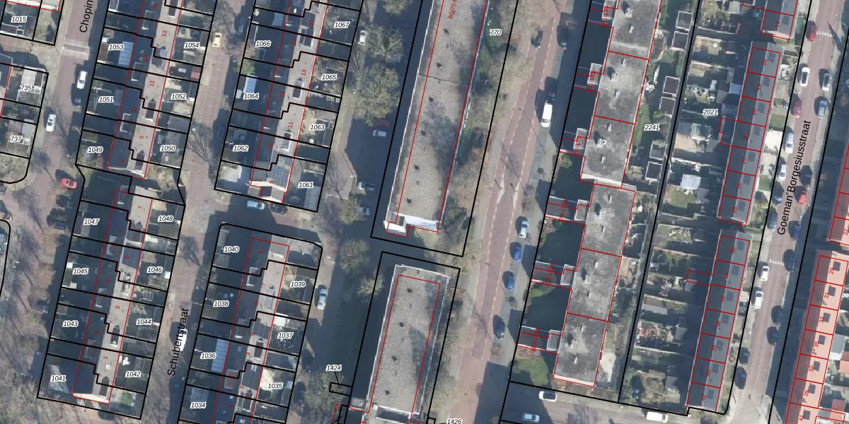 Het perceel waarop Haydnstraat 192 staat heeft een oppervlakte van 2414 m². Dit is een zeer groot perceel. De perceeloppervlakte wordt geregistreerd door het Kadaster. Gedetailleerde informatie over de maten van dit perceel kunt u vinden in het rapport Kadastrale kaart met maatvoering van Haydnstraat 192.