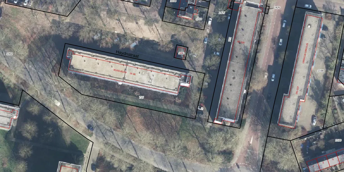 Het perceel waarop Haydnstraat 34 staat heeft een oppervlakte van 2182 m². Dit is een zeer groot perceel. De perceeloppervlakte wordt geregistreerd door het Kadaster. Gedetailleerde informatie over de maten van dit perceel kunt u vinden in het rapport Kadastrale kaart met maatvoering van Haydnstraat 34.