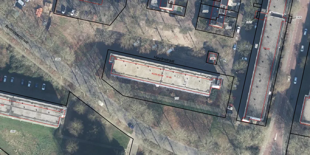 Het perceel waarop Haydnstraat 42 staat heeft een oppervlakte van 2182 m². Dit is een zeer groot perceel. De perceeloppervlakte wordt geregistreerd door het Kadaster. Gedetailleerde informatie over de maten van dit perceel kunt u vinden in het rapport Kadastrale kaart met maatvoering van Haydnstraat 42.