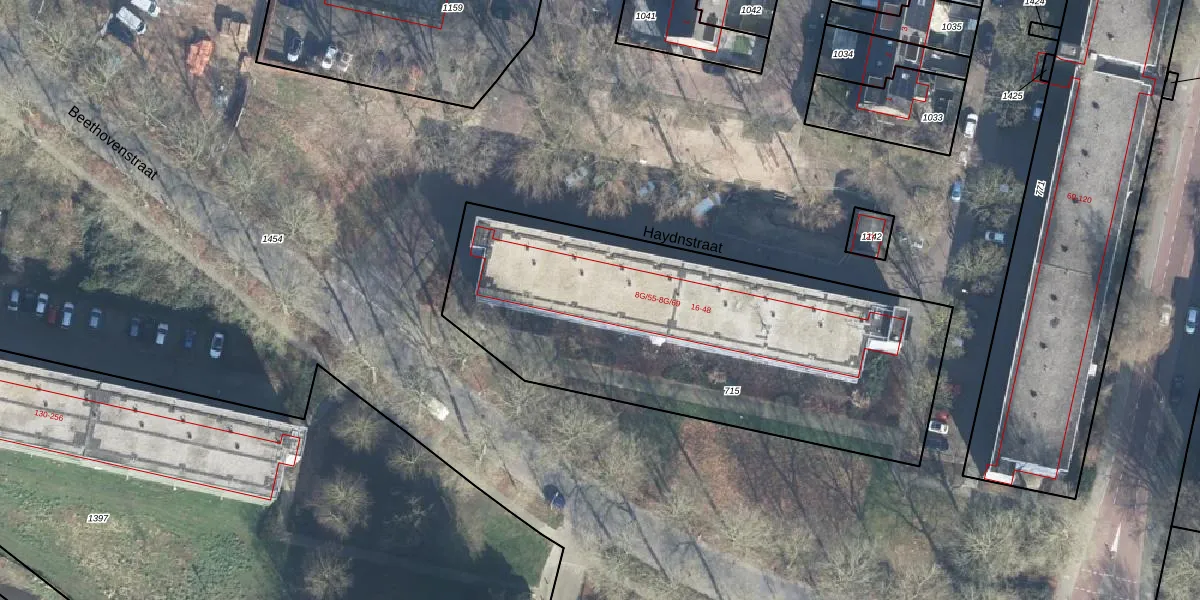 Het perceel waarop Haydnstraat 44 staat heeft een oppervlakte van 2182 m². Dit is een zeer groot perceel. De perceeloppervlakte wordt geregistreerd door het Kadaster. Gedetailleerde informatie over de maten van dit perceel kunt u vinden in het rapport Kadastrale kaart met maatvoering van Haydnstraat 44.
