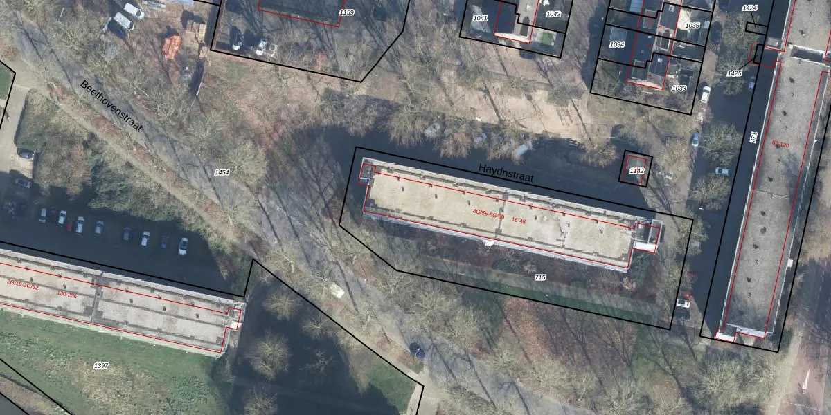 Het perceel waarop Haydnstraat 46 staat heeft een oppervlakte van 2182 m². Dit is een zeer groot perceel. De perceeloppervlakte wordt geregistreerd door het Kadaster. Gedetailleerde informatie over de maten van dit perceel kunt u vinden in het rapport Kadastrale kaart met maatvoering van Haydnstraat 46.