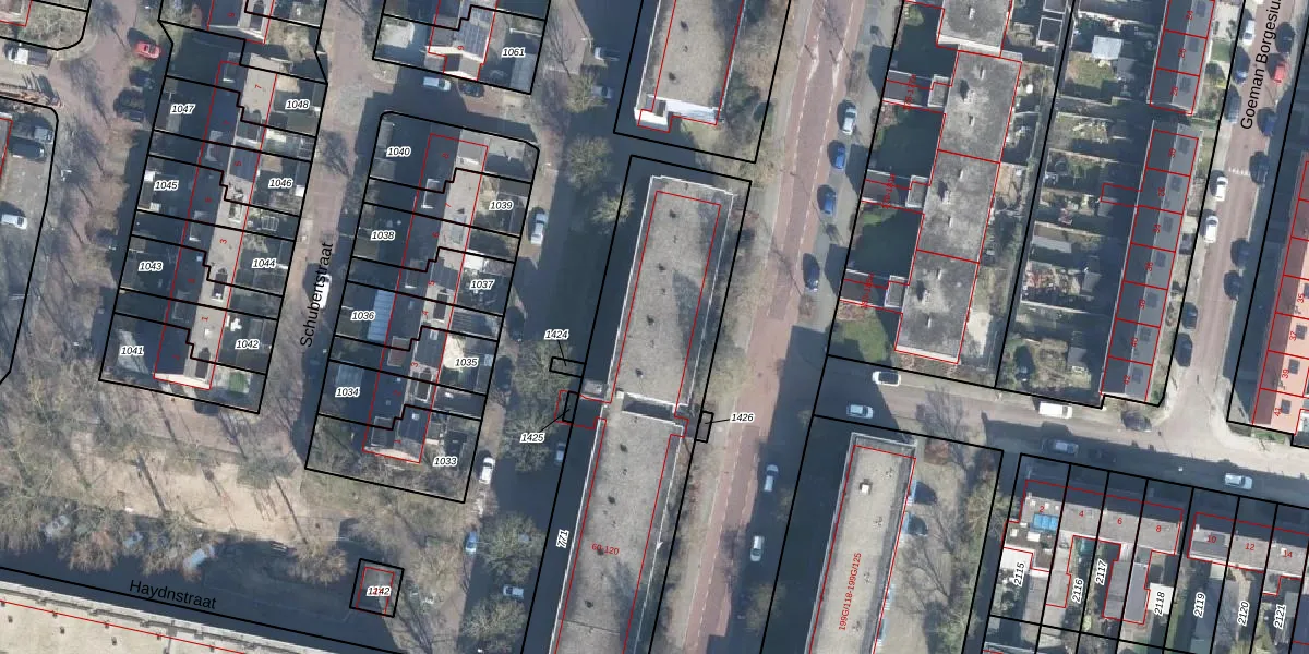Het perceel waarop Haydnstraat 60 staat heeft een oppervlakte van 2074 m². Dit is een zeer groot perceel. De perceeloppervlakte wordt geregistreerd door het Kadaster. Gedetailleerde informatie over de maten van dit perceel kunt u vinden in het rapport Kadastrale kaart met maatvoering van Haydnstraat 60.