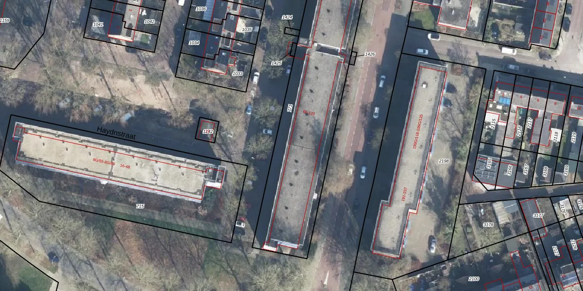 Het perceel waarop Haydnstraat 72-G-399 staat heeft een oppervlakte van 2074 m². Dit is een zeer groot perceel. De perceeloppervlakte wordt geregistreerd door het Kadaster. Gedetailleerde informatie over de maten van dit perceel kunt u vinden in het rapport Kadastrale kaart met maatvoering van Haydnstraat 72-G-399.