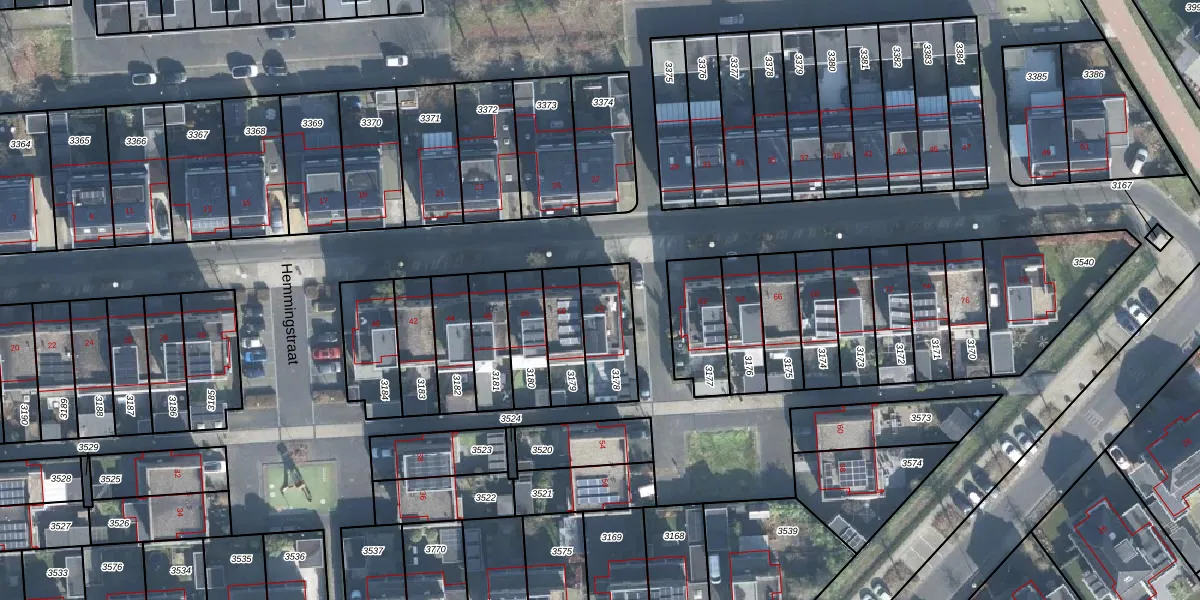 Het perceel waarop Hemmingstraat 52 staat heeft een oppervlakte van 194 m². Dit is een middelgroot perceel. De perceeloppervlakte wordt geregistreerd door het Kadaster. Gedetailleerde informatie over de maten van dit perceel kunt u vinden in het rapport Kadastrale kaart met maatvoering van Hemmingstraat 52.