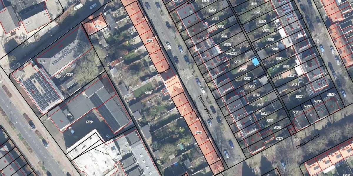 Het perceel waarop Hemonystraat 40 staat heeft een oppervlakte van 3091 m². Dit is een zeer groot perceel. De perceeloppervlakte wordt geregistreerd door het Kadaster. Gedetailleerde informatie over de maten van dit perceel kunt u vinden in het rapport Kadastrale kaart met maatvoering van Hemonystraat 40.