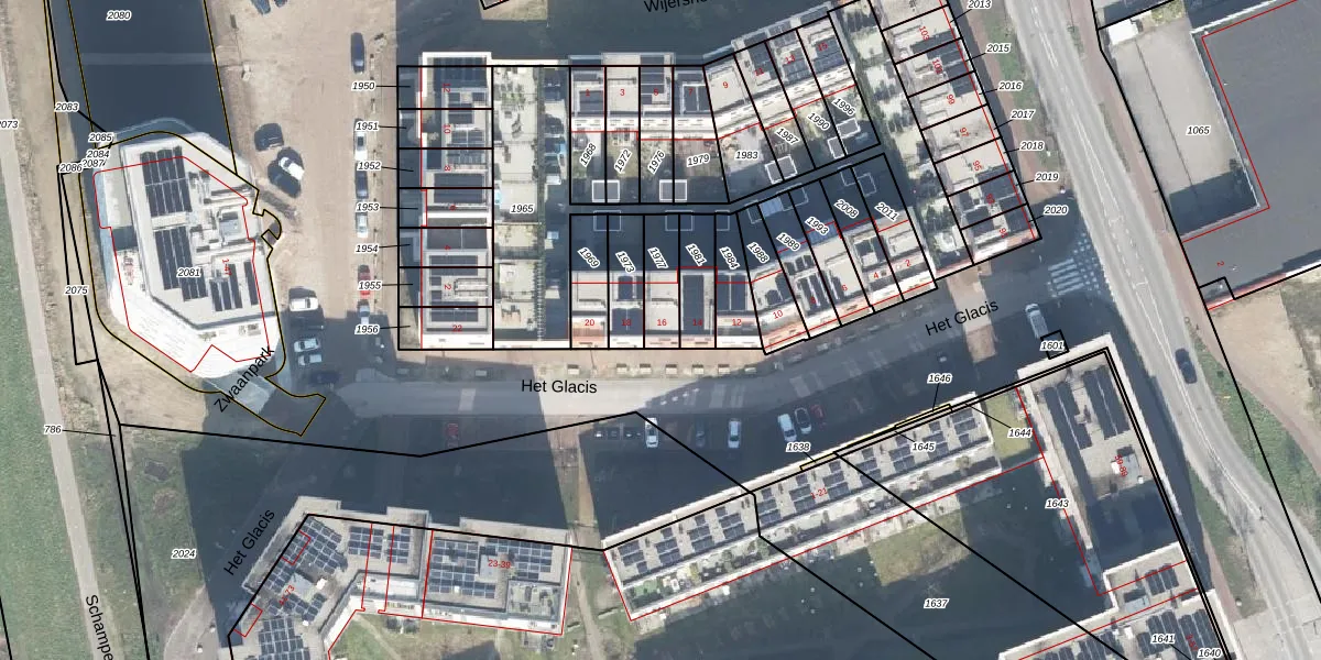 Het perceel waarop Het Glacis 16 staat heeft een oppervlakte van 110 m². Dit is een middelgroot perceel. De perceeloppervlakte wordt geregistreerd door het Kadaster. Gedetailleerde informatie over de maten van dit perceel kunt u vinden in het rapport Kadastrale kaart met maatvoering van Het Glacis 16.