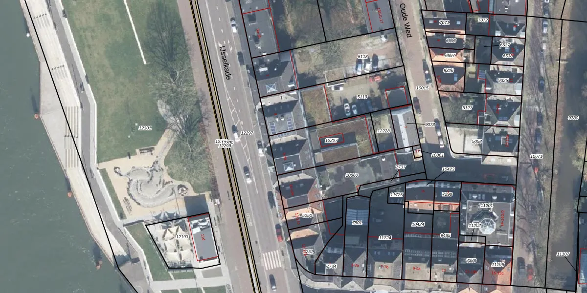 Het perceel waarop IJsselkade 9 staat heeft een oppervlakte van 482 m². Dit is een groot perceel. De perceeloppervlakte wordt geregistreerd door het Kadaster. Gedetailleerde informatie over de maten van dit perceel kunt u vinden in het rapport Kadastrale kaart met maatvoering van IJsselkade 9.