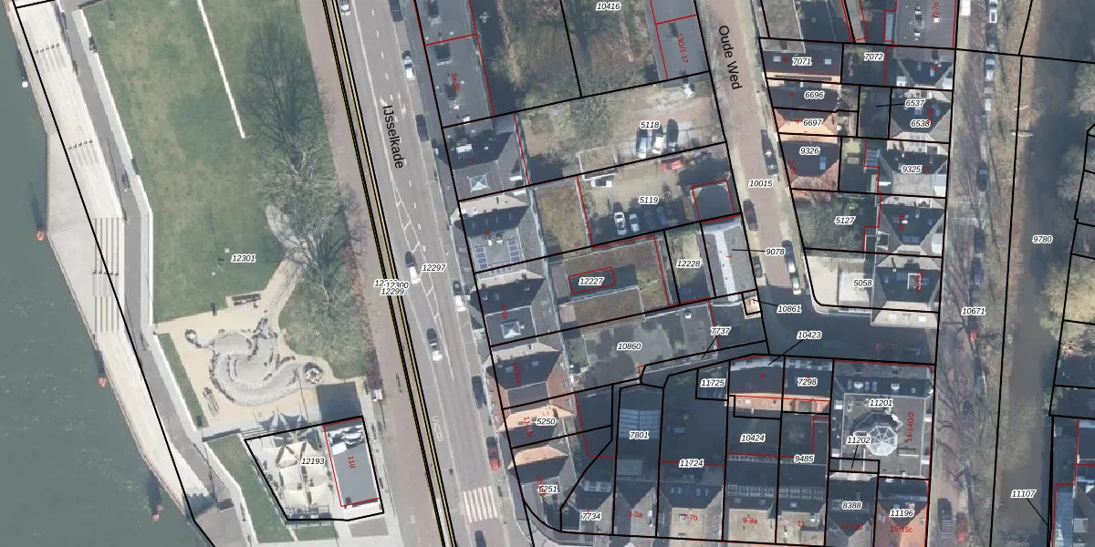 Het perceel waarop IJsselkade 9-c staat heeft een oppervlakte van 482 m². Dit is een groot perceel. De perceeloppervlakte wordt geregistreerd door het Kadaster. Gedetailleerde informatie over de maten van dit perceel kunt u vinden in het rapport Kadastrale kaart met maatvoering van IJsselkade 9-c.