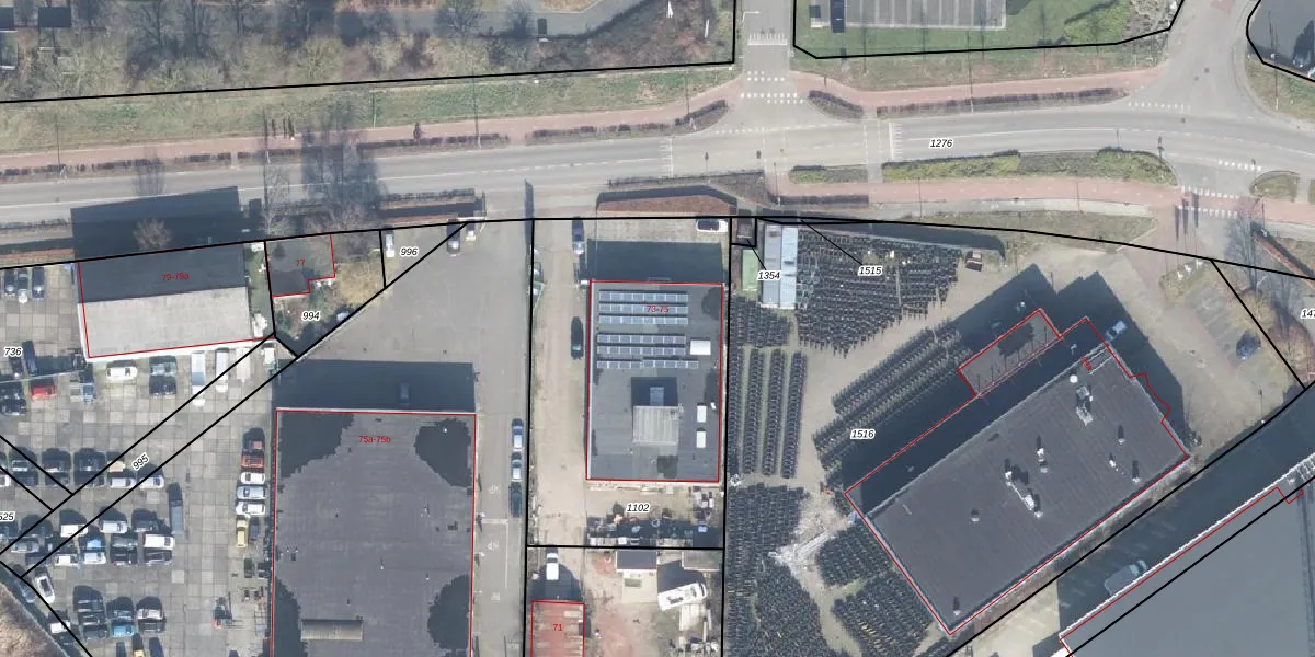 Het perceel waarop Industrieweg 75 staat heeft een oppervlakte van 1495 m². Dit is een zeer groot perceel. De perceeloppervlakte wordt geregistreerd door het Kadaster. Gedetailleerde informatie over de maten van dit perceel kunt u vinden in het rapport Kadastrale kaart met maatvoering van Industrieweg 75.