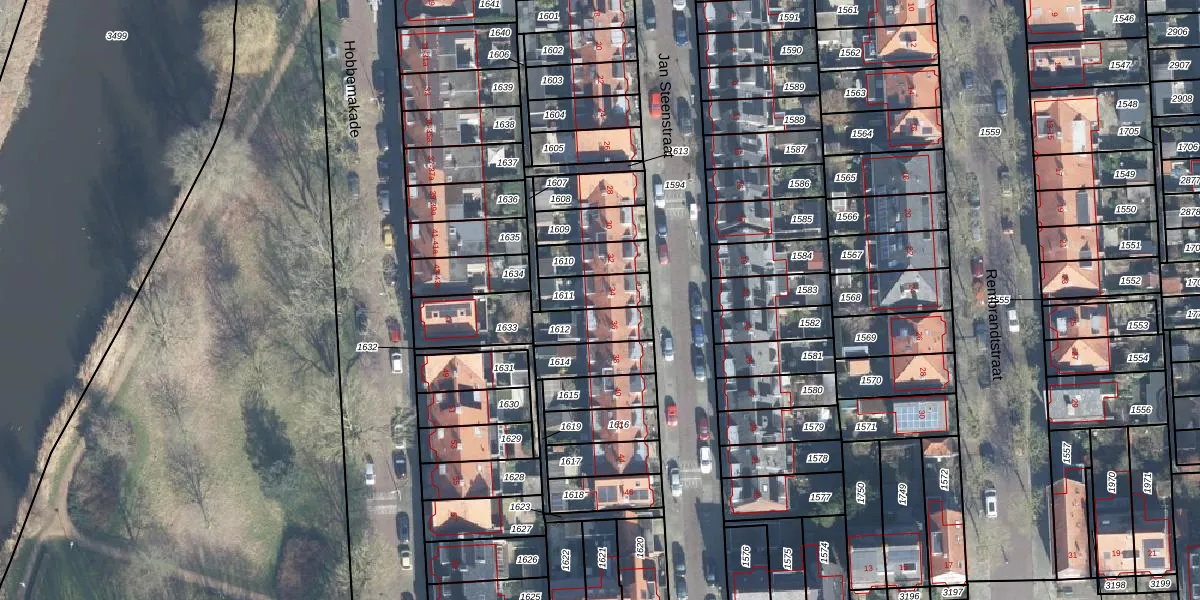 Het perceel waarop Jan Steenstraat 34 staat heeft een oppervlakte van 104 m². Dit is een middelgroot perceel. De perceeloppervlakte wordt geregistreerd door het Kadaster. Gedetailleerde informatie over de maten van dit perceel kunt u vinden in het rapport Kadastrale kaart met maatvoering van Jan Steenstraat 34.