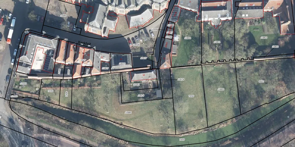 Het perceel waarop Kerkhof 18 staat heeft een oppervlakte van 300 m². Dit is een groot perceel. De perceeloppervlakte wordt geregistreerd door het Kadaster. Gedetailleerde informatie over de maten van dit perceel kunt u vinden in het rapport Kadastrale kaart met maatvoering van Kerkhof 18.