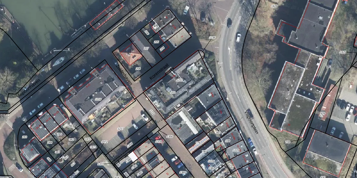 Korenstraat 25 is gelegen op kadastraal perceel ZPN00D203. Deze kadastrale aanduiding is uniek en wordt gebruikt door het Kadaster om eigendomsrechten en andere zakelijke rechten vast te leggen. Het perceel maakt onderdeel uit van de kadastrale gemeente Zutphen.