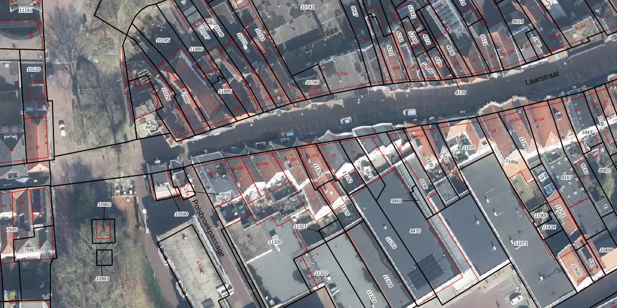 Het perceel waarop Laarstraat 22 staat heeft een oppervlakte van 92 m². Dit is een klein perceel. De perceeloppervlakte wordt geregistreerd door het Kadaster. Gedetailleerde informatie over de maten van dit perceel kunt u vinden in het rapport Kadastrale kaart met maatvoering van Laarstraat 22.