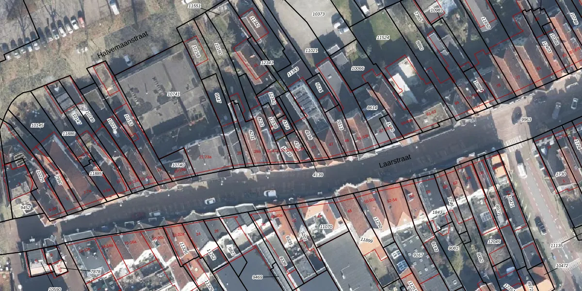 Het perceel waarop Laarstraat 33-a staat heeft een oppervlakte van 37 m². Dit is een klein perceel. De perceeloppervlakte wordt geregistreerd door het Kadaster. Gedetailleerde informatie over de maten van dit perceel kunt u vinden in het rapport Kadastrale kaart met maatvoering van Laarstraat 33-a.
