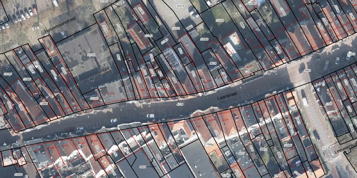Het perceel waarop Laarstraat 45 staat heeft een oppervlakte van 115 m². Dit is een middelgroot perceel. De perceeloppervlakte wordt geregistreerd door het Kadaster. Gedetailleerde informatie over de maten van dit perceel kunt u vinden in het rapport Kadastrale kaart met maatvoering van Laarstraat 45.