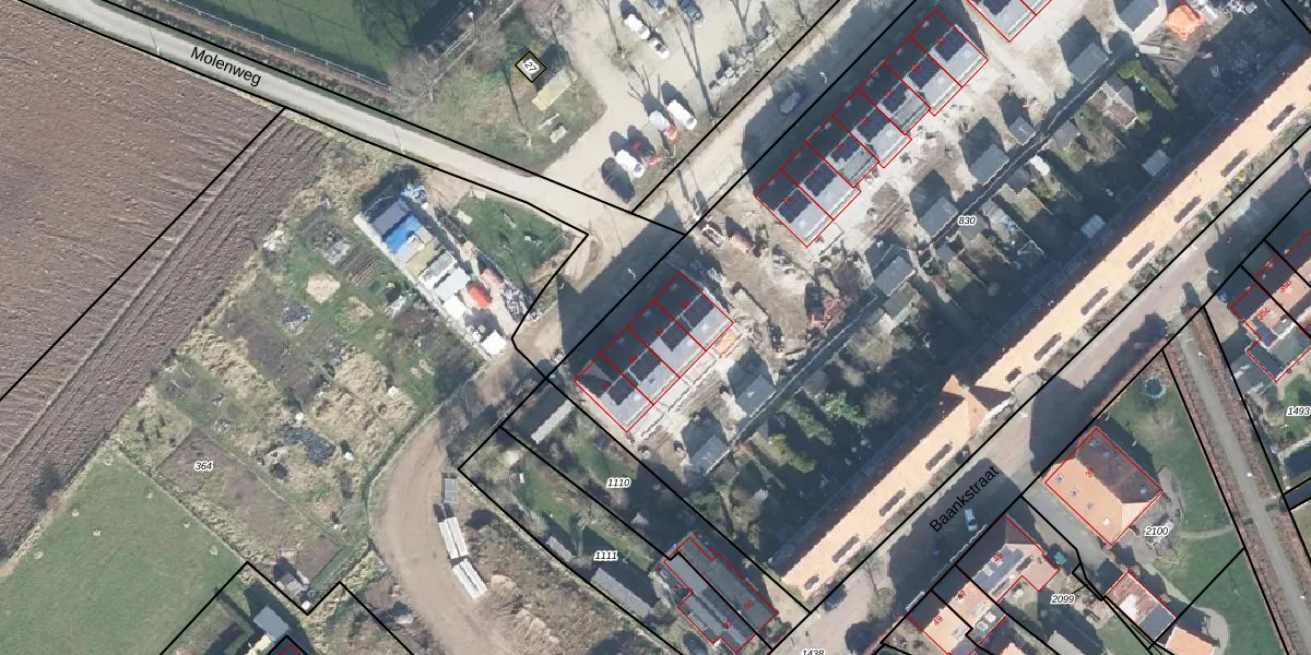 Het perceel waarop Molenweg 87 staat heeft een oppervlakte van 6588 m². Dit is een zeer groot perceel. De perceeloppervlakte wordt geregistreerd door het Kadaster. Gedetailleerde informatie over de maten van dit perceel kunt u vinden in het rapport Kadastrale kaart met maatvoering van Molenweg 87.