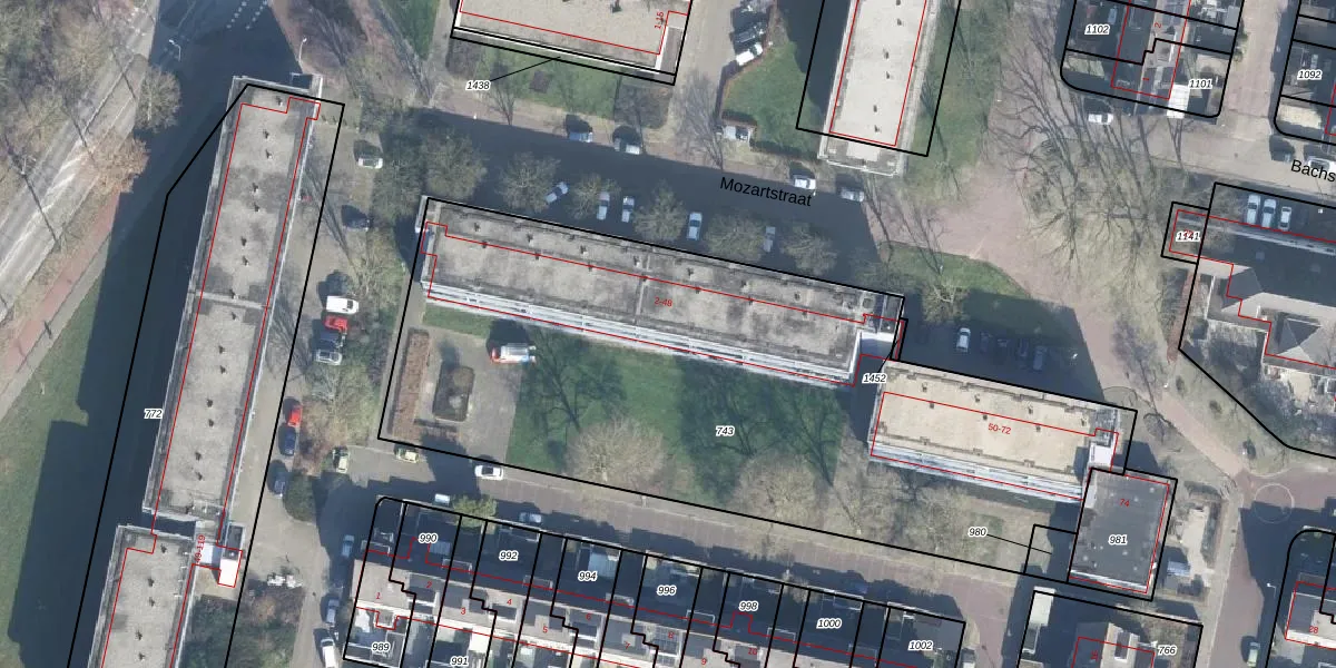 Het perceel waarop Mozartstraat 40 staat heeft een oppervlakte van 3594 m². Dit is een zeer groot perceel. De perceeloppervlakte wordt geregistreerd door het Kadaster. Gedetailleerde informatie over de maten van dit perceel kunt u vinden in het rapport Kadastrale kaart met maatvoering van Mozartstraat 40.