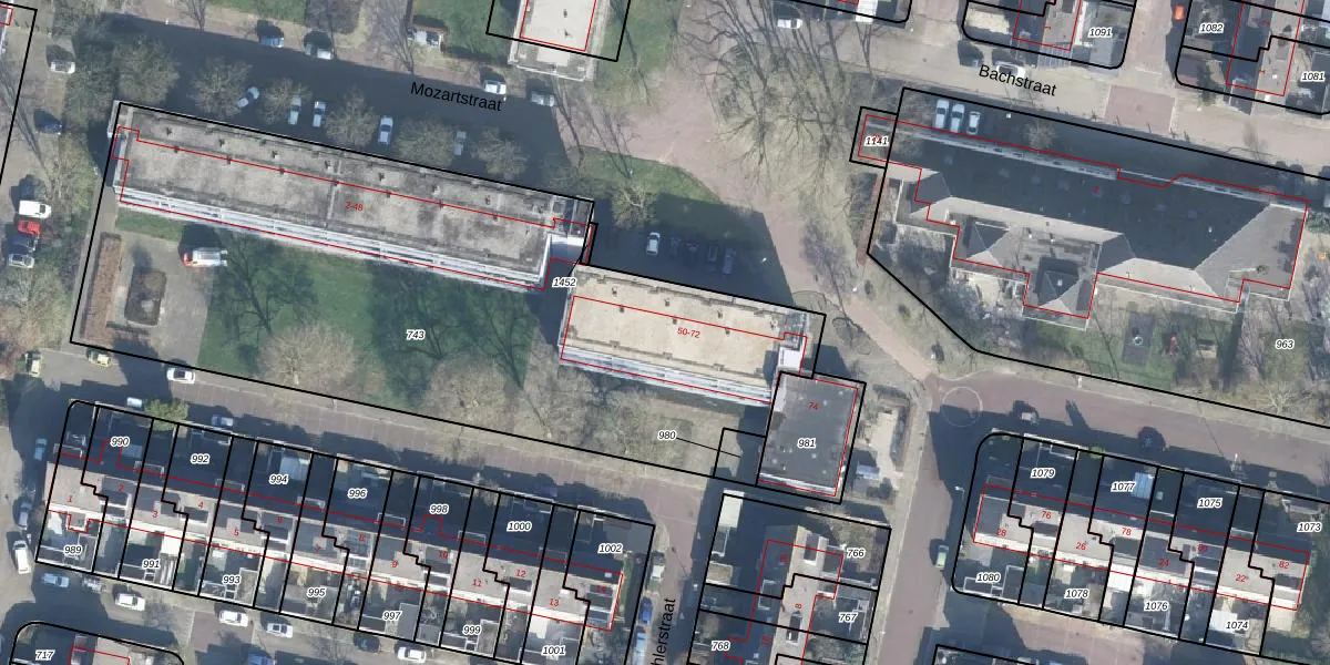 Het perceel waarop Mozartstraat 54 staat heeft een oppervlakte van 3594 m². Dit is een zeer groot perceel. De perceeloppervlakte wordt geregistreerd door het Kadaster. Gedetailleerde informatie over de maten van dit perceel kunt u vinden in het rapport Kadastrale kaart met maatvoering van Mozartstraat 54.