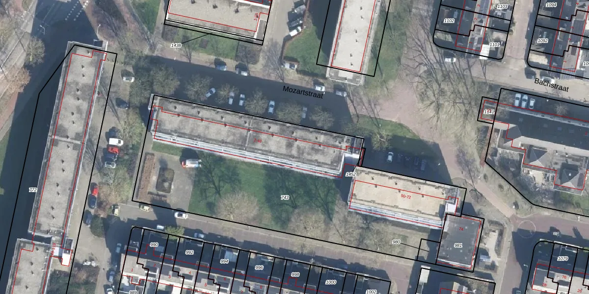 Het perceel waarop Mozartstraat 6 staat heeft een oppervlakte van 3594 m². Dit is een zeer groot perceel. De perceeloppervlakte wordt geregistreerd door het Kadaster. Gedetailleerde informatie over de maten van dit perceel kunt u vinden in het rapport Kadastrale kaart met maatvoering van Mozartstraat 6.