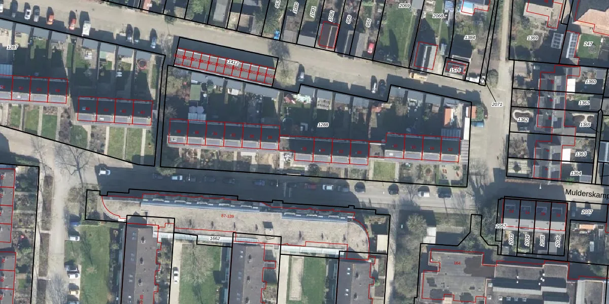 Het perceel waarop Mulderskamp 26 staat heeft een oppervlakte van 2956 m². Dit is een zeer groot perceel. De perceeloppervlakte wordt geregistreerd door het Kadaster. Gedetailleerde informatie over de maten van dit perceel kunt u vinden in het rapport Kadastrale kaart met maatvoering van Mulderskamp 26.
