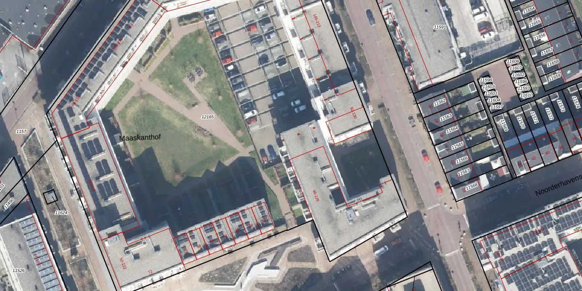 Het perceel waarop Noorderhavenstraat 90 staat heeft een oppervlakte van 9391 m². Dit is een zeer groot perceel. De perceeloppervlakte wordt geregistreerd door het Kadaster. Gedetailleerde informatie over de maten van dit perceel kunt u vinden in het rapport Kadastrale kaart met maatvoering van Noorderhavenstraat 90.