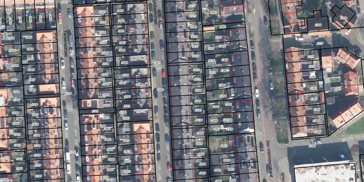 Het perceel waarop Ruysdaelstraat 17 staat heeft een oppervlakte van 112 m². Dit is een middelgroot perceel. De perceeloppervlakte wordt geregistreerd door het Kadaster. Gedetailleerde informatie over de maten van dit perceel kunt u vinden in het rapport Kadastrale kaart met maatvoering van Ruysdaelstraat 17.