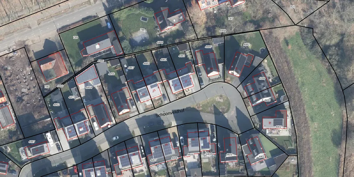 Het perceel waarop Schoonveldhof 25 staat heeft een oppervlakte van 283 m². Dit is een middelgroot perceel. De perceeloppervlakte wordt geregistreerd door het Kadaster. Gedetailleerde informatie over de maten van dit perceel kunt u vinden in het rapport Kadastrale kaart met maatvoering van Schoonveldhof 25.