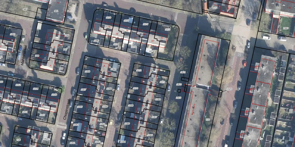 Gebruik de zoekbalk of klik op een perceel voor informatie over de adressen binnen dit perceel.
