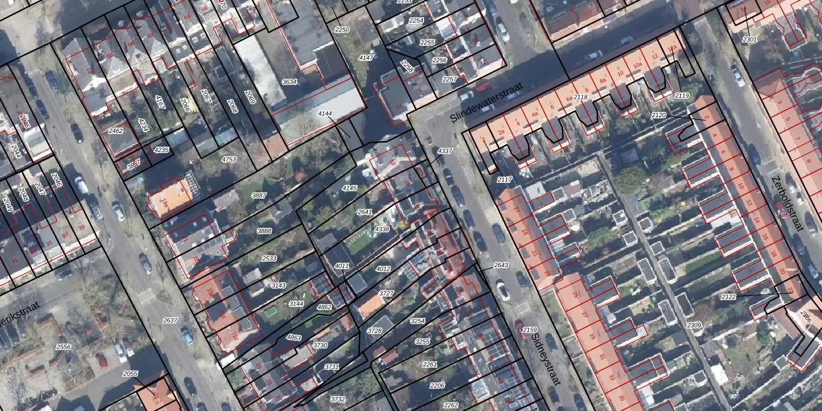 Gebruik de zoekbalk of klik op een perceel voor informatie over de adressen binnen dit perceel.