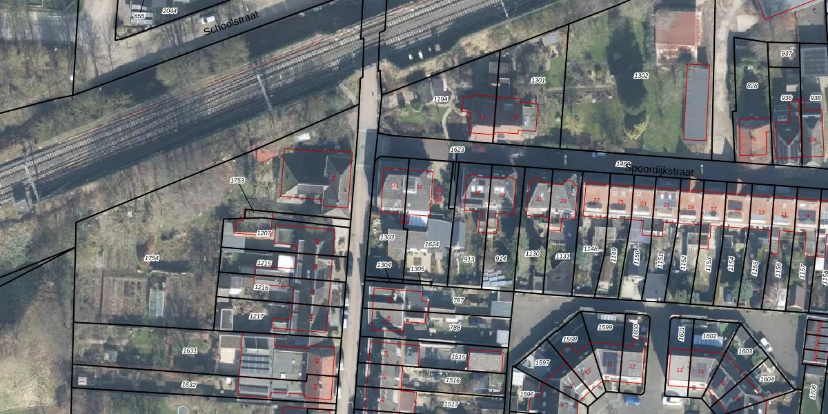 Het perceel waarop Spoordijkstraat 37 staat heeft een oppervlakte van 325 m². Dit is een groot perceel. De perceeloppervlakte wordt geregistreerd door het Kadaster. Gedetailleerde informatie over de maten van dit perceel kunt u vinden in het rapport Kadastrale kaart met maatvoering van Spoordijkstraat 37.
