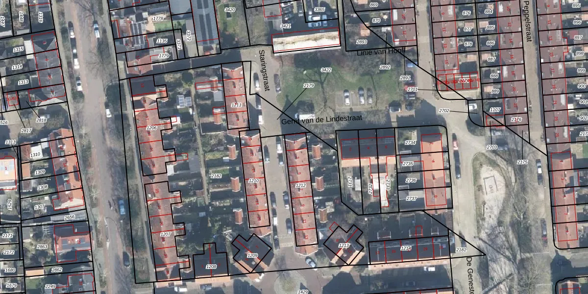 Het perceel waarop Staringstraat 1 staat heeft een oppervlakte van 278 m². Dit is een middelgroot perceel. De perceeloppervlakte wordt geregistreerd door het Kadaster. Gedetailleerde informatie over de maten van dit perceel kunt u vinden in het rapport Kadastrale kaart met maatvoering van Staringstraat 1.