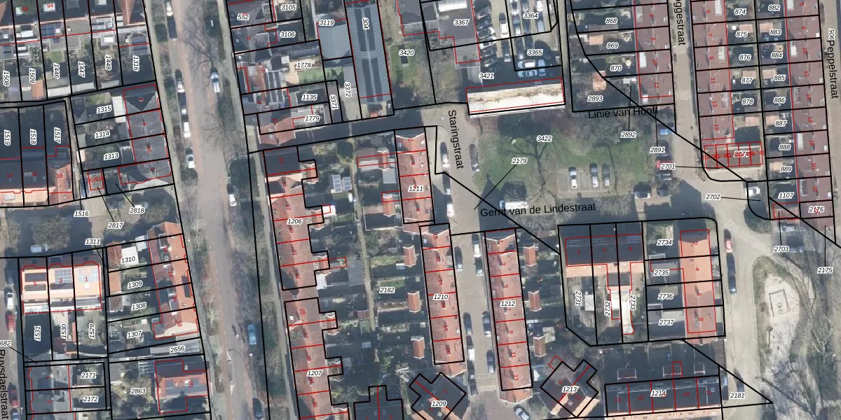 Het perceel waarop Staringstraat 8 staat heeft een oppervlakte van 164 m². Dit is een middelgroot perceel. De perceeloppervlakte wordt geregistreerd door het Kadaster. Gedetailleerde informatie over de maten van dit perceel kunt u vinden in het rapport Kadastrale kaart met maatvoering van Staringstraat 8.