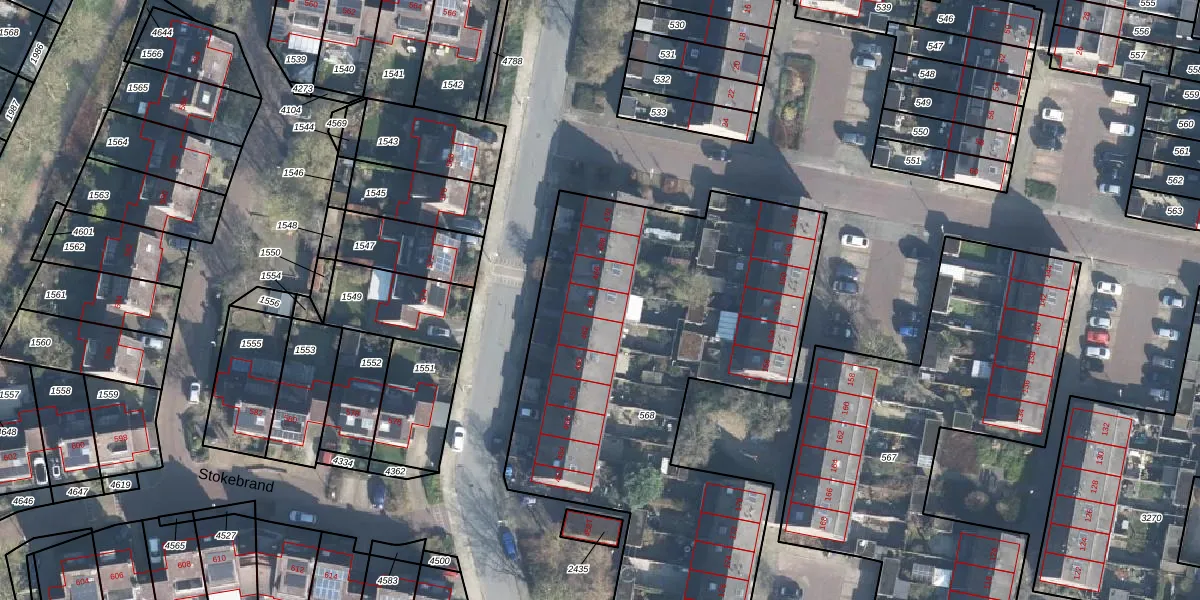 Het perceel waarop Stokebrand 464 staat heeft een oppervlakte van 2579 m². Dit is een zeer groot perceel. De perceeloppervlakte wordt geregistreerd door het Kadaster. Gedetailleerde informatie over de maten van dit perceel kunt u vinden in het rapport Kadastrale kaart met maatvoering van Stokebrand 464.