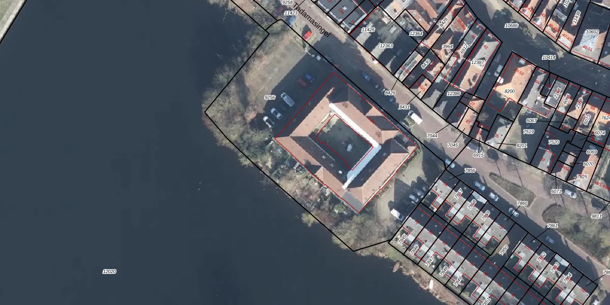 Het perceel waarop Tadamasingel 22 staat heeft een oppervlakte van 2960 m². Dit is een zeer groot perceel. De perceeloppervlakte wordt geregistreerd door het Kadaster. Gedetailleerde informatie over de maten van dit perceel kunt u vinden in het rapport Kadastrale kaart met maatvoering van Tadamasingel 22.