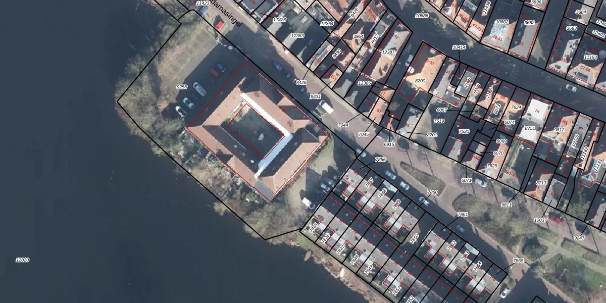Het perceel waarop Tadamasingel 38 staat heeft een oppervlakte van 2960 m². Dit is een zeer groot perceel. De perceeloppervlakte wordt geregistreerd door het Kadaster. Gedetailleerde informatie over de maten van dit perceel kunt u vinden in het rapport Kadastrale kaart met maatvoering van Tadamasingel 38.