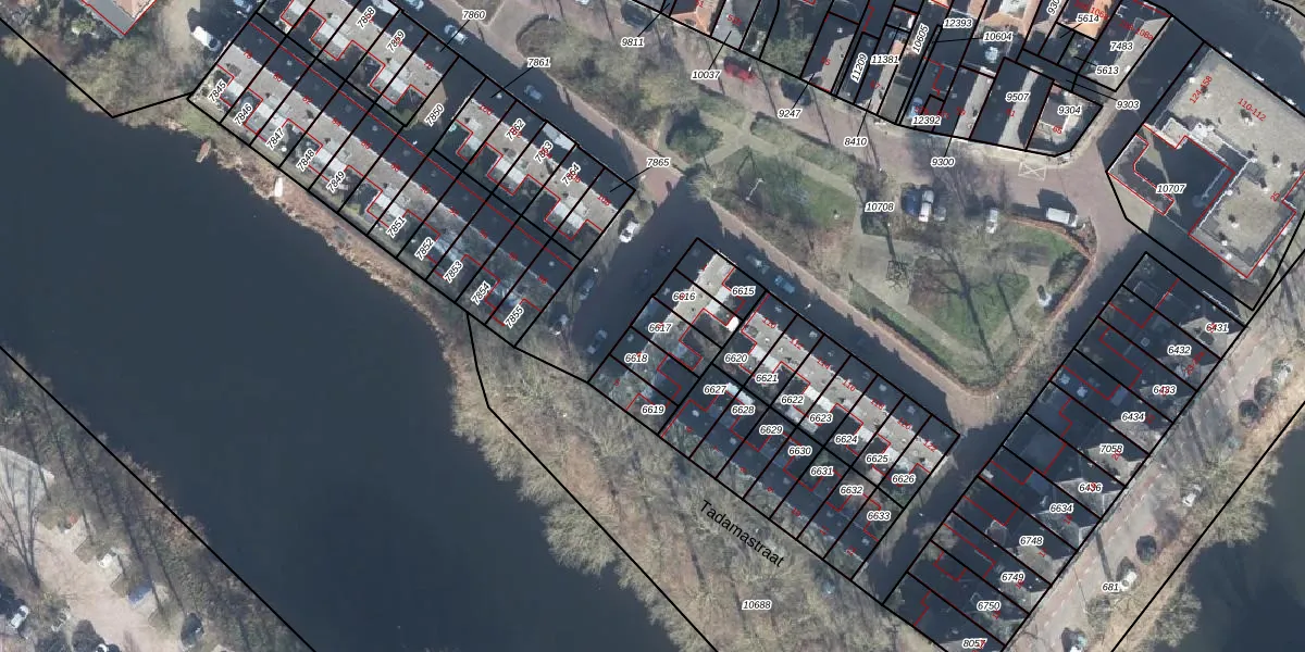 Gebruik de zoekbalk of klik op een perceel voor informatie over de adressen binnen dit perceel.