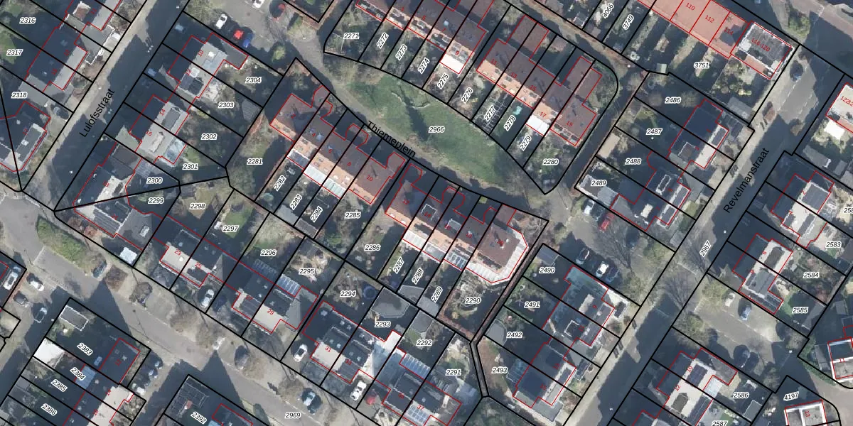 Het perceel waarop Thiemeplein 14 staat heeft een oppervlakte van 157 m². Dit is een middelgroot perceel. De perceeloppervlakte wordt geregistreerd door het Kadaster. Gedetailleerde informatie over de maten van dit perceel kunt u vinden in het rapport Kadastrale kaart met maatvoering van Thiemeplein 14.