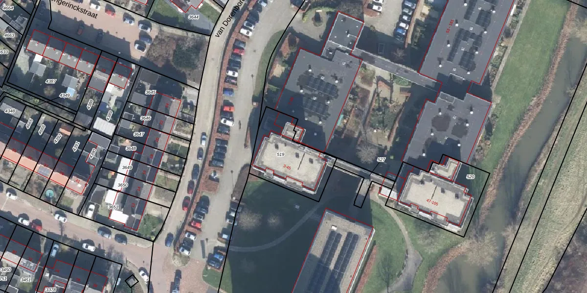 Het perceel waarop van Dorenborchstraat 43 staat heeft een oppervlakte van 530 m². Dit is een groot perceel. De perceeloppervlakte wordt geregistreerd door het Kadaster. Gedetailleerde informatie over de maten van dit perceel kunt u vinden in het rapport Kadastrale kaart met maatvoering van van Dorenborchstraat 43.